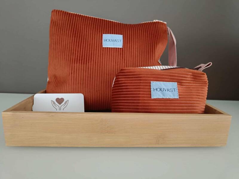 Een knuffel met bijhorende toiletzak voor een jonge meid.